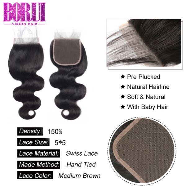 4*4 5*5 6*6 Lace Closure Brazilian Unprocessed human hair closure
