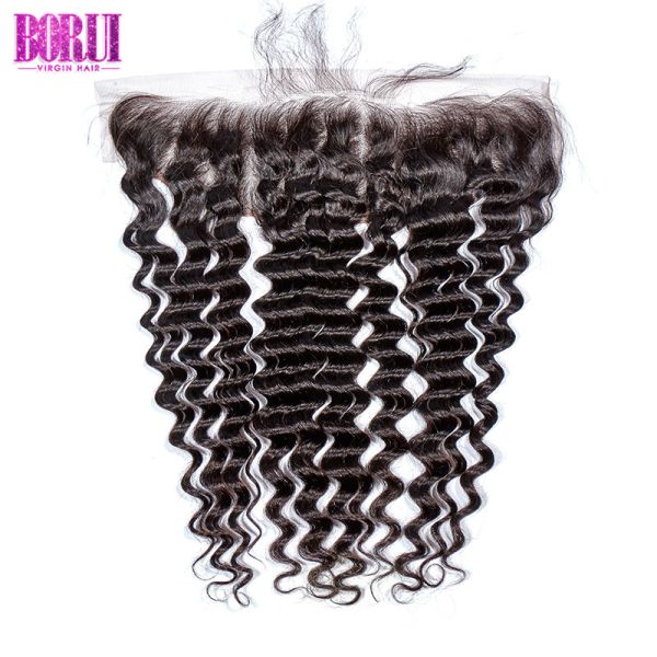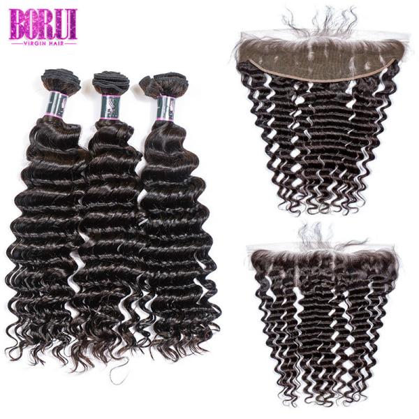 13*6 Virgin Baby Hair Deep Wave Human Hair Lace Frontal 3 Bundles With Closure Images |