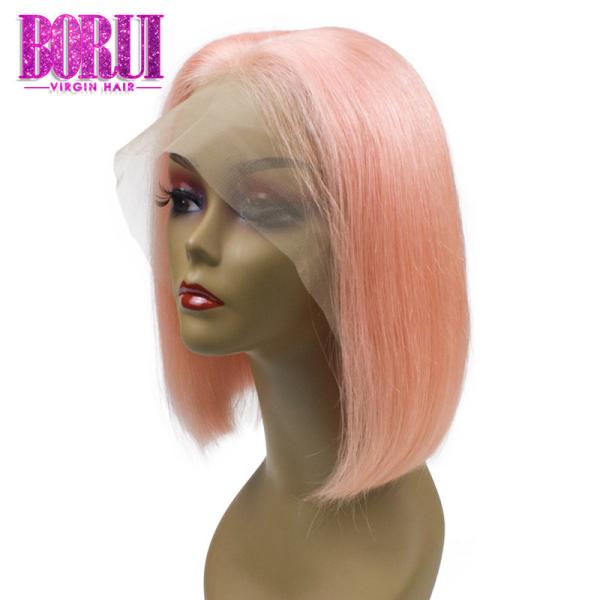 Brazilian Human Hair Short Colored Bob Wigs 180% Density Pink Lace Front Images |
